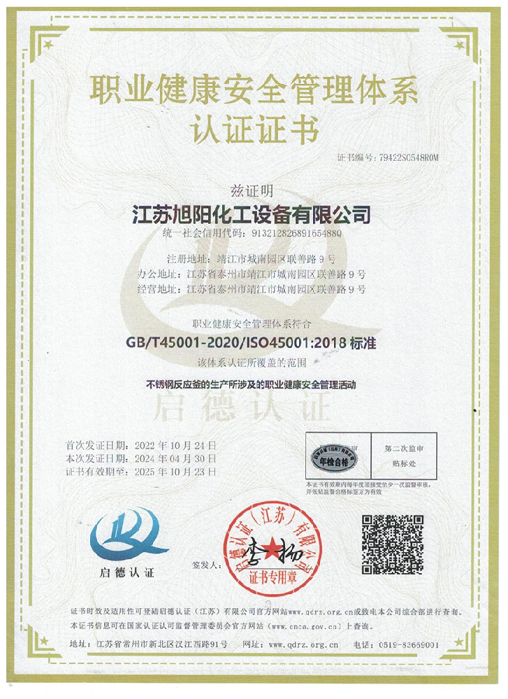 江蘇旭陽化工設(shè)備有限公司專業(yè)從事各類化工、環(huán)保、制藥、發(fā)酵、食品、新材料、鋰業(yè)等項(xiàng)目設(shè)計、制造及壓力容器的生產(chǎn)制造,是一家集研發(fā)、生產(chǎn)和進(jìn)出口貿(mào)易于一體的高科技企業(yè)。